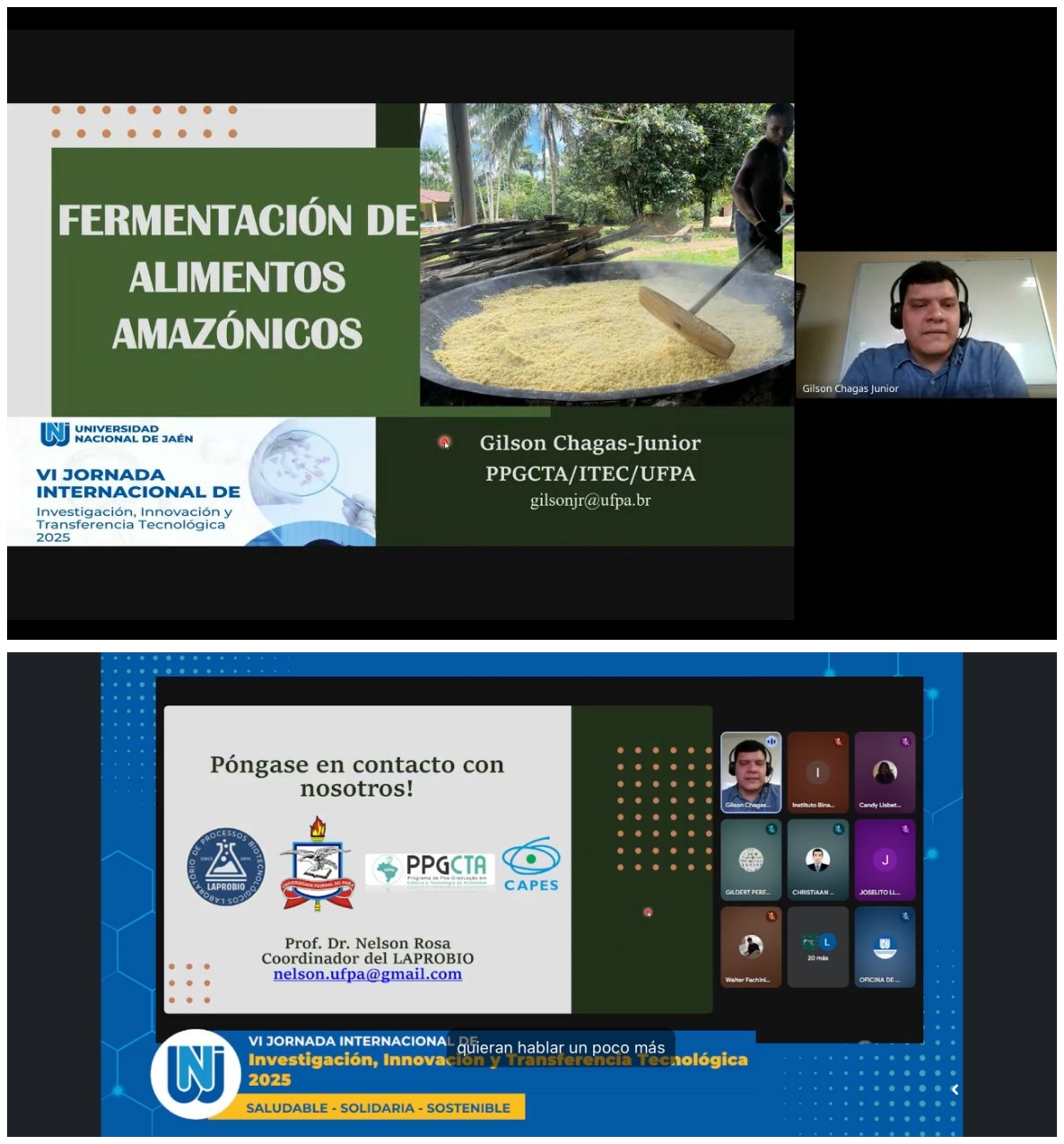 No dia 23 de outubro de 2025, o pós-doutorando Gilson Chagas Júnior, bolsista PIPD/CAPES vinculado ao Programa de Pós-Graduação em Ciência e Tecnologia de Alimentos (PPGCTA/UFPA), participou como palestrante da VI Jornada Internacional de Investigación, Innovación y Transferencia Tecnológica 2025, organizada pela Universidad Nacional de Jaén (Peru).