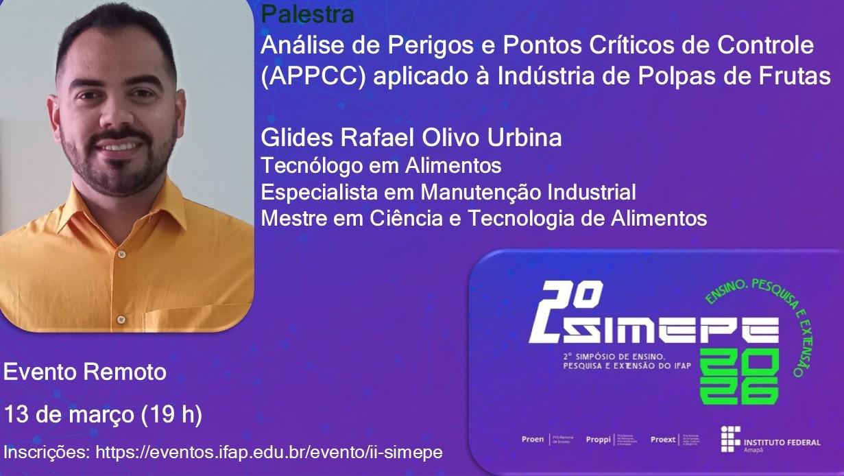 Palestra: Aplicação do Sistema APPCC na Indústria de Polpas de Frutas, com o aluno do programa Glides Rafael.